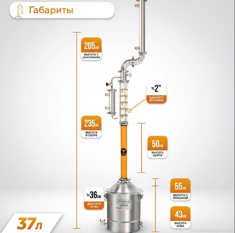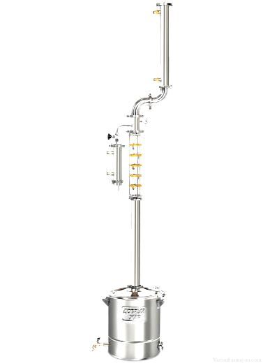 «Титан 2.0» - это самогонный аппарат с тарельчатой колонной 2 дюйма и узлом отбора по жидкости для стабильного и равномерного отбора дистиллята при второй перегонке, а если говорить проще, то для более качественной очистки.
