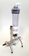 Электрическая установка ДИСТИВ состоит из прозрачной колбы для засыпки фильтрующего состава с фильтр-шайбой из ретикулированного пенополиуретана, мембранной помпы, блока питания, с кнопкой включения /выключения, силиконовых шлангов, металического каркаса из пищевой нержавеющей стали. Соединения колбы выполнены на быстросъемных фитингах.